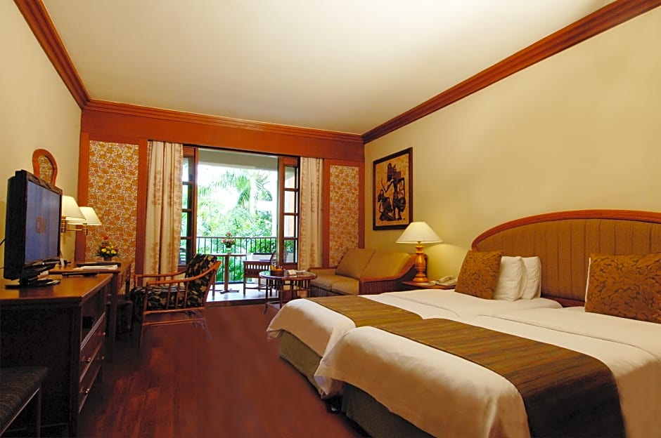 在Ayodya Resort Bali,您的舒適至為重要。從各種房型選擇,每間客房均配有陽台和私人浴室。Grande Connecting Room非常適合家庭或團體,配有兩張單人床和一張大床,可容納四位成人。如果您作為一對夫妻或獨自旅行者,Grande Double或Twin Room是一個寬敞舒適的選擇,配有一張特大號床和兩張單人床可供選擇。偏好較小的房間?Deluxe Double或Twin Room提供了舒適和溫馨的完美結合,配有兩張單人床和一張特大號床。如果您想要沉醉於奢華之中,Ayodya Suite with Club Benefits是理想之選。憑藉其寬敞的尺寸、特大號床和獨家俱樂部福利,您在逗留期間將真正感受到皇室的待遇。無論您選擇哪間客房,您都將保證在Ayodya Resort Bali找到舒適和放鬆。